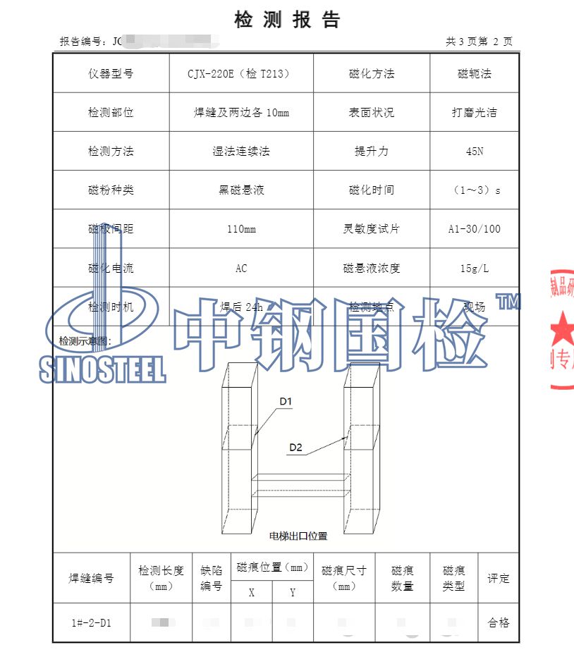 檢測項目:1.焊縫質量檢測(磁粉檢測)