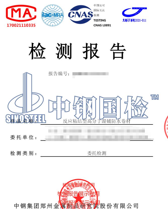 濕鋪防水卷材檢測案例——中鋼國檢