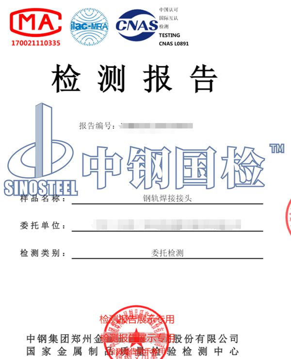 哪里可以做鋼軌閃光焊接接頭檢測?中鋼國檢是有資質的專業第三方檢測機構,我們的CMA資質是國家頒發,蓋有中鋼國家認證認可監督管理委員會章,我們還認證了國內和國外CNAS證書,安全生產檢測證書、特種設備檢測證書、橋隧專項、綜甲資質等,并參與制定多項行業標準。